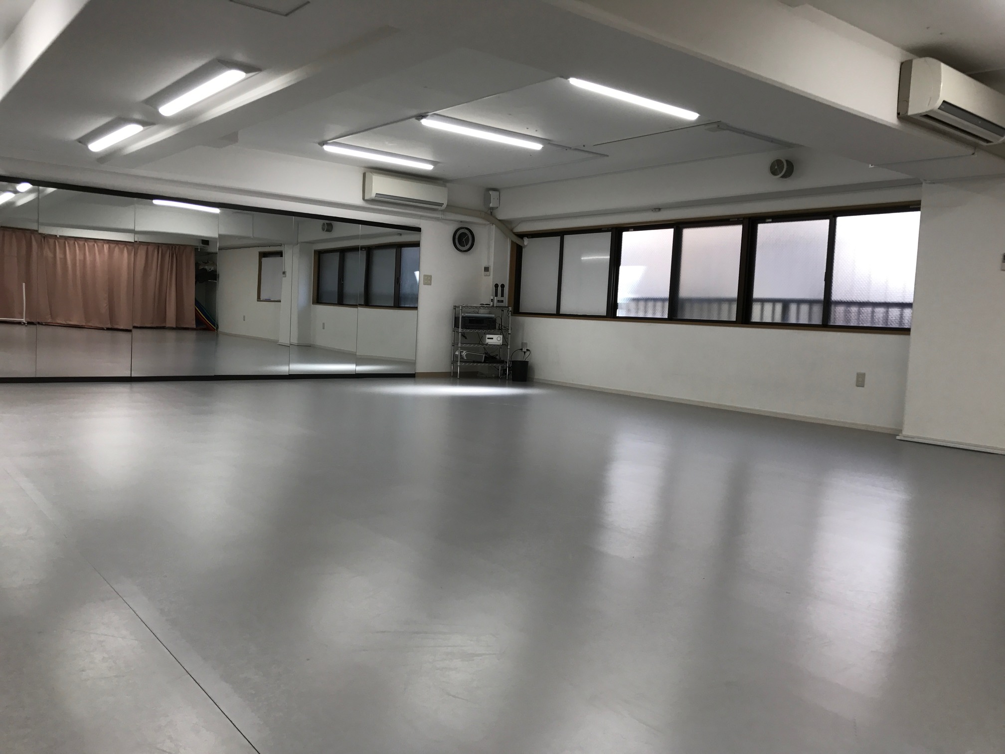 音響、鏡、更衣室完備。用途に合わせた床材のスタジオをご用意。